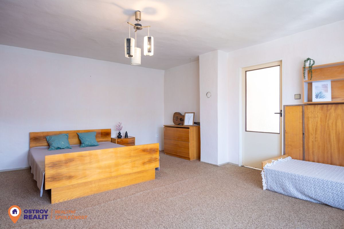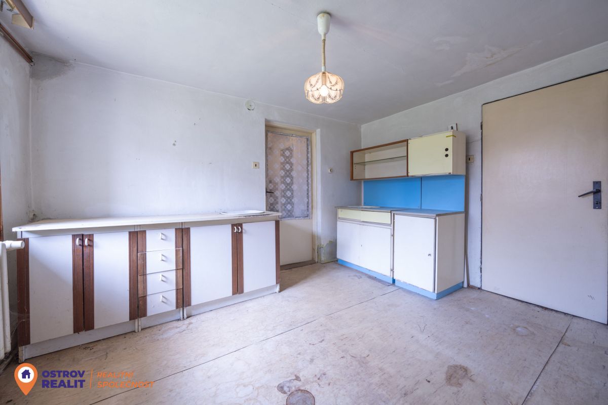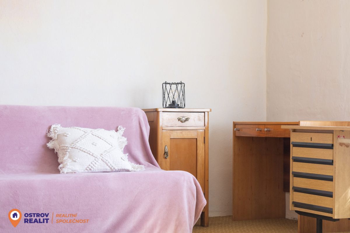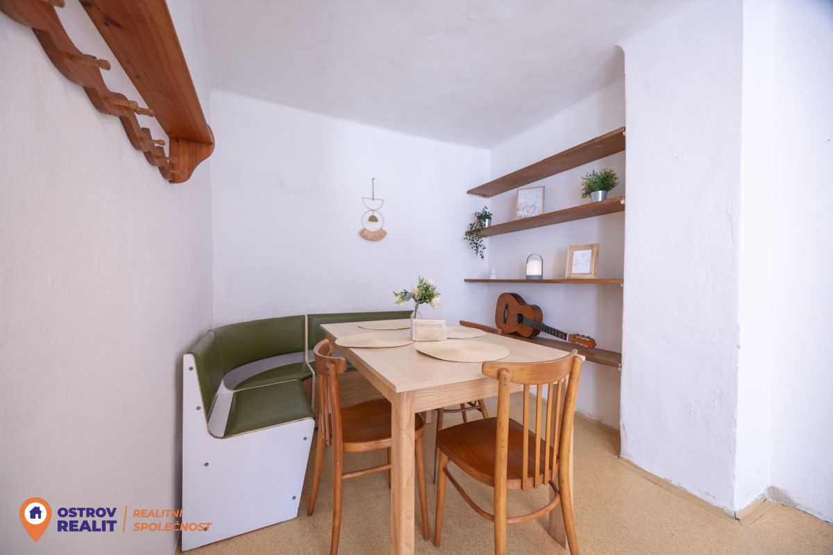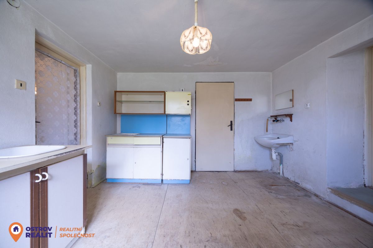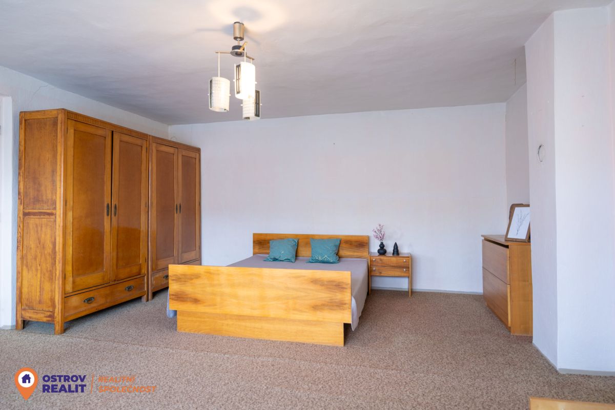 Druhá bytová jednotka o dispozici 1+1 je přístupná samostatným vchodem, navazuje na hlavní část domu a je kompletně v původním stavu – ideální k rekonstrukci dle vlastních představ.