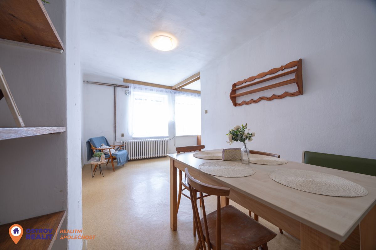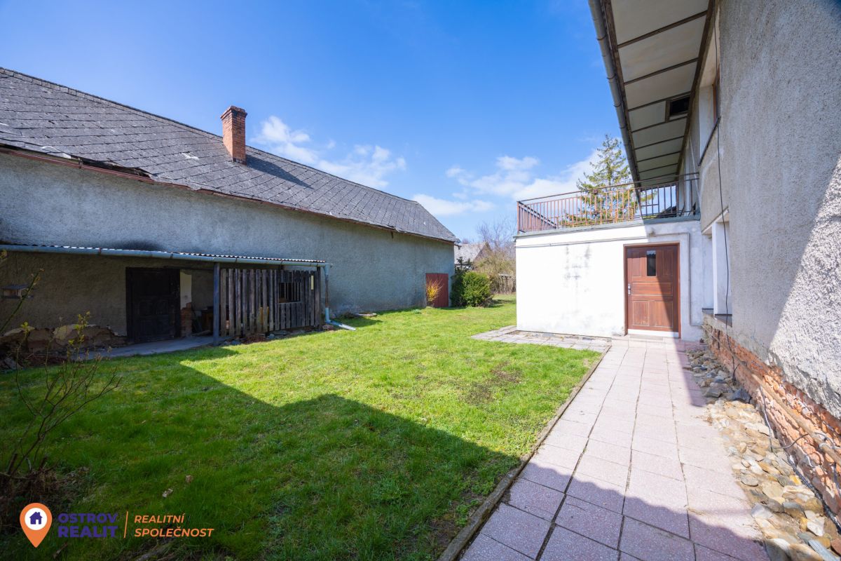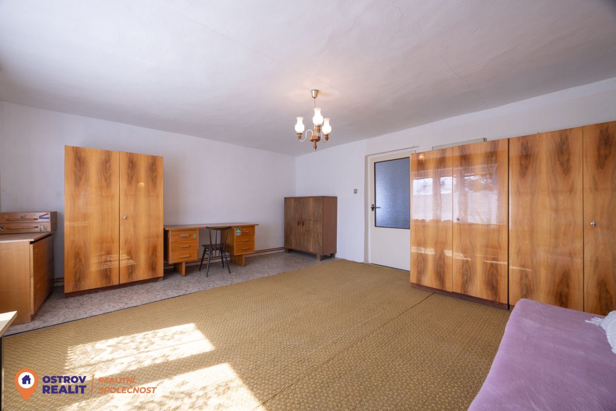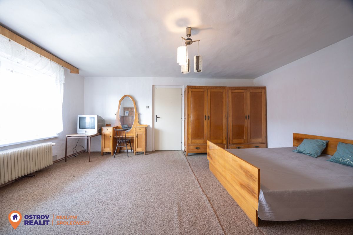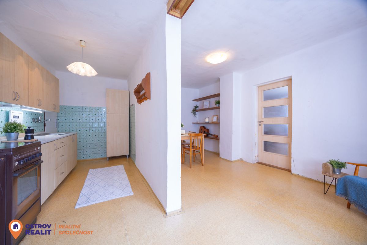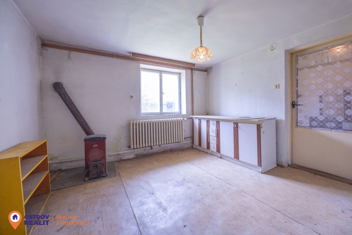 Druhá bytová jednotka o dispozici 1+1 je přístupná samostatným vchodem, navazuje na hlavní část domu a je kompletně v původním stavu – ideální k rekonstrukci dle vlastních představ.