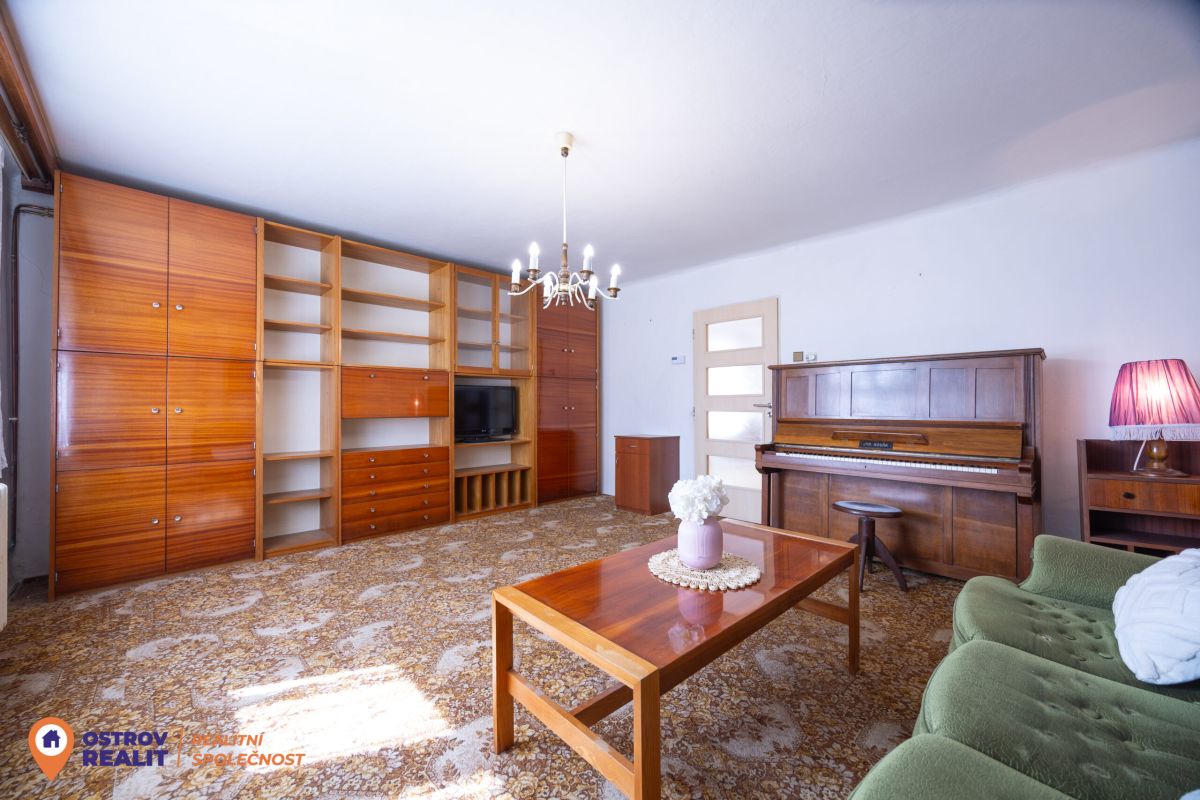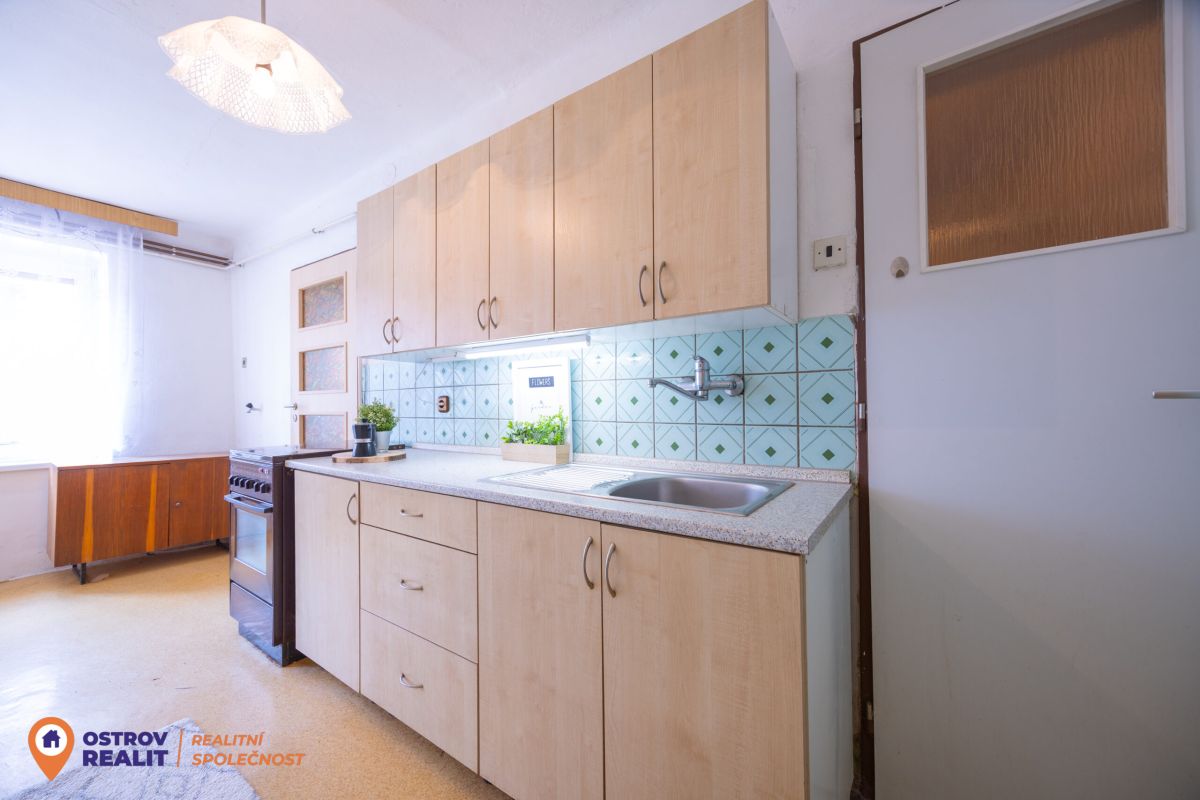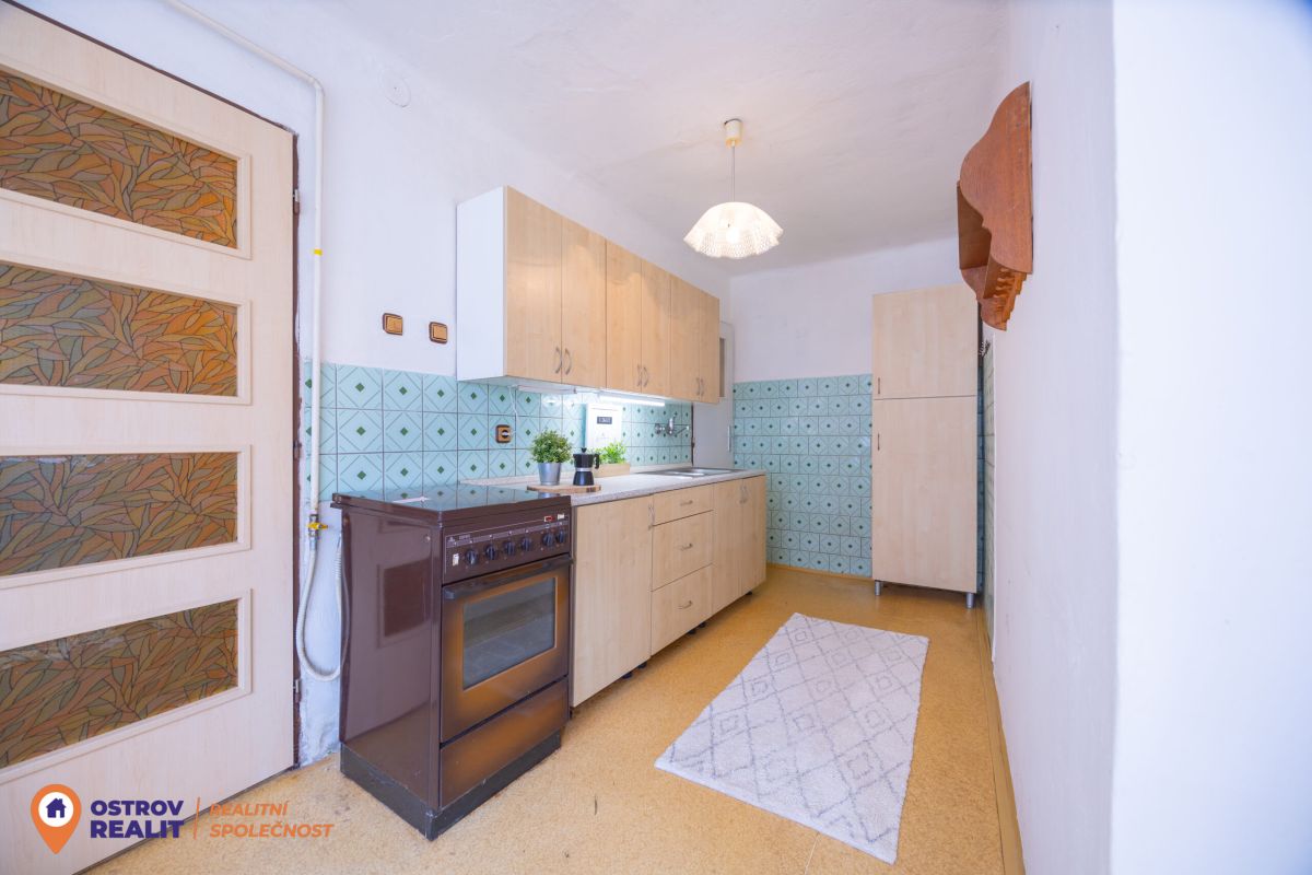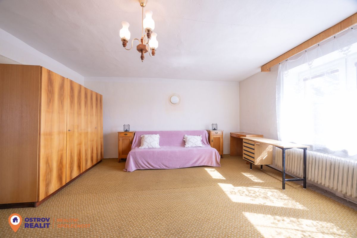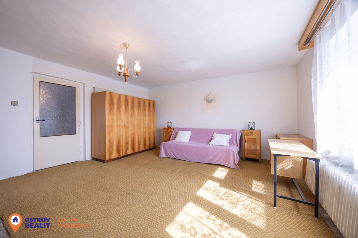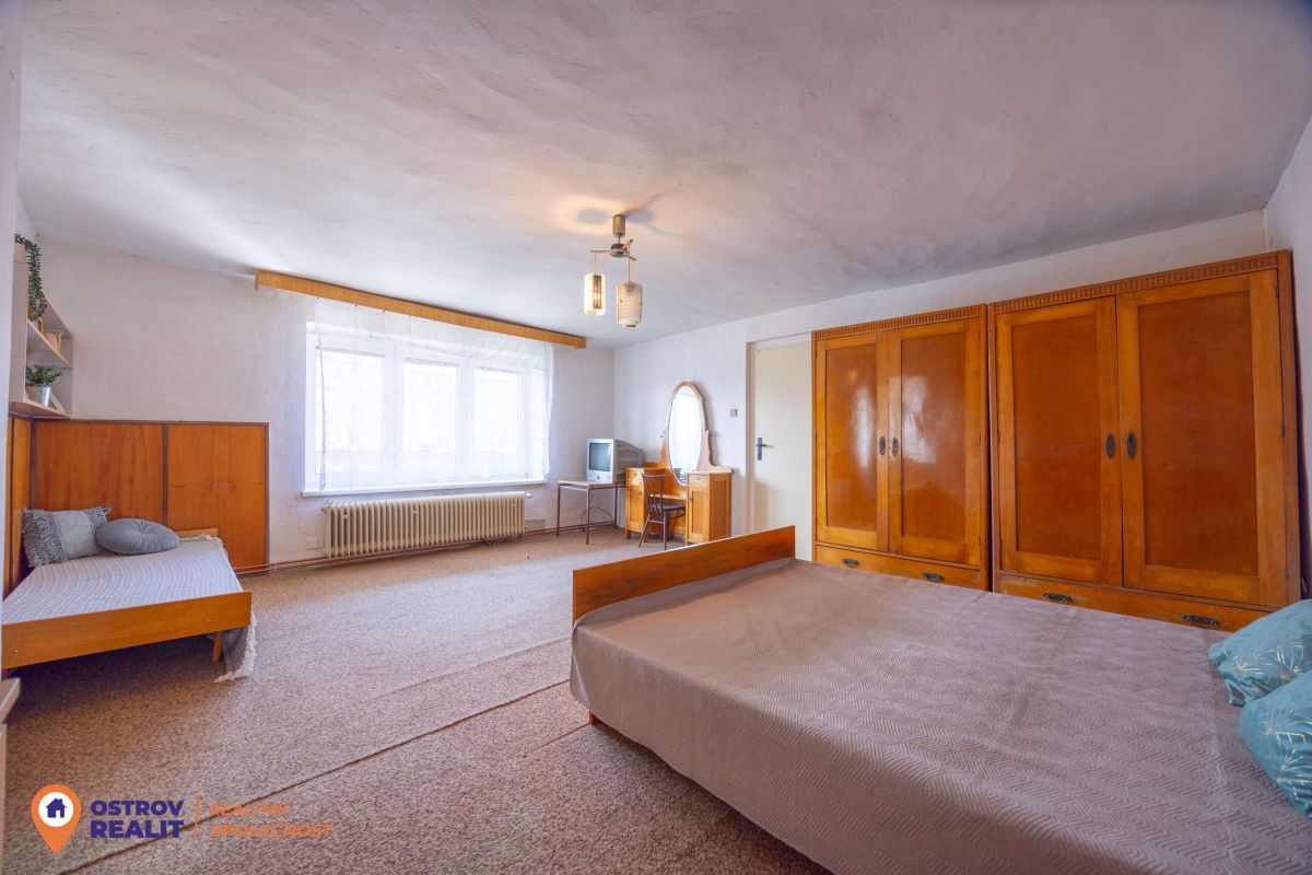 Druhá bytová jednotka o dispozici 1+1 je přístupná samostatným vchodem, navazuje na hlavní část domu a je kompletně v původním stavu – ideální k rekonstrukci dle vlastních představ.