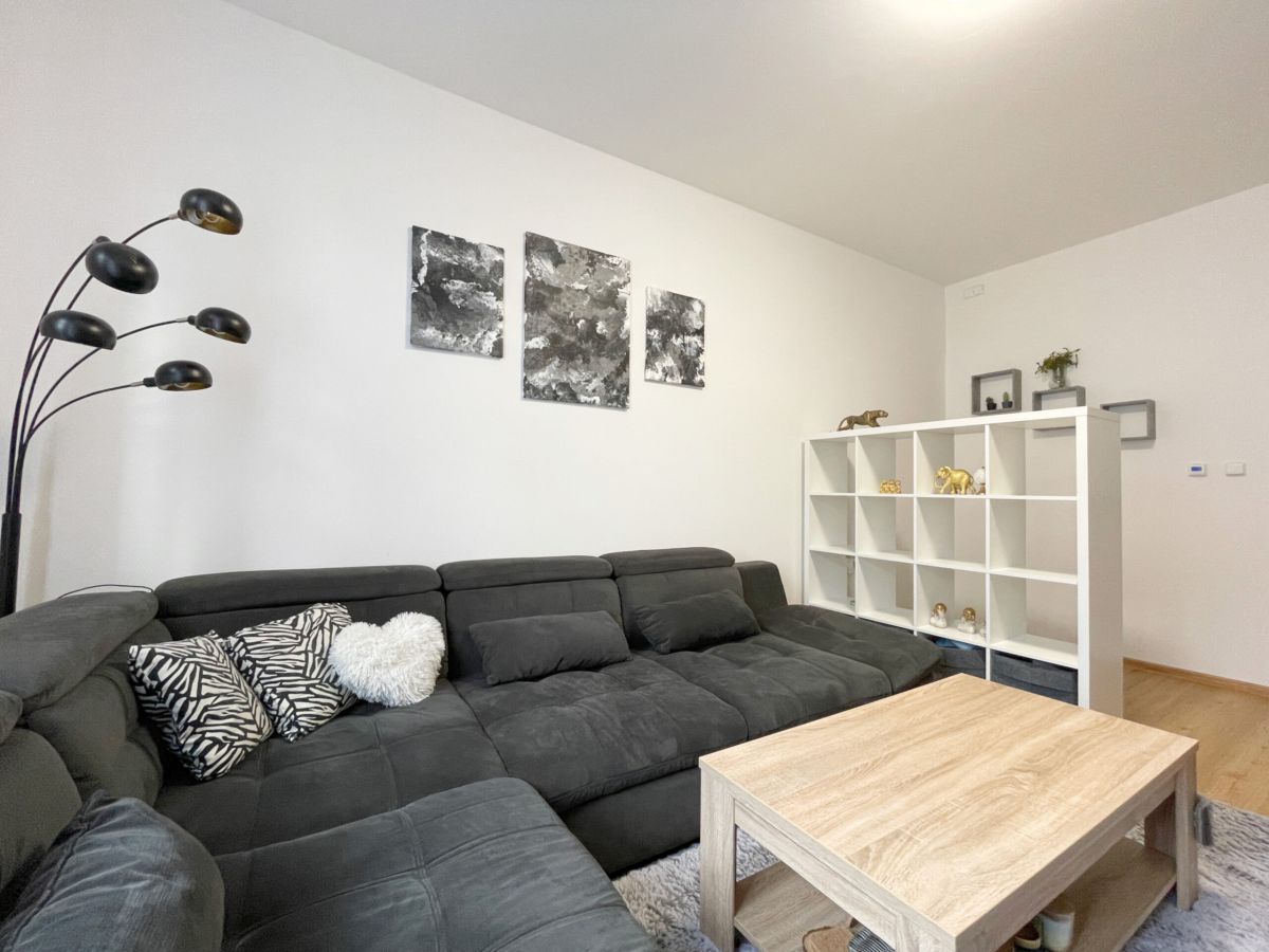 Obývací pokoj je orientovaný na opačnou stranu bytu, takže si jednotlivé místnosti nijak neruší své soukromí.