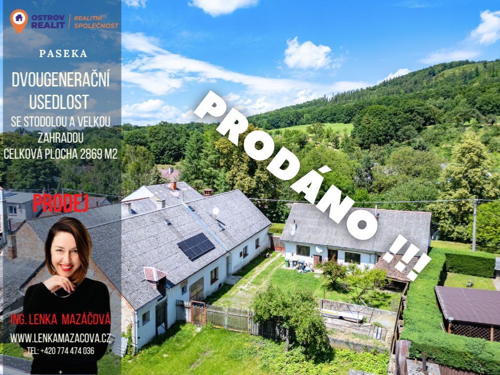 Prodej dvougeneračního bydlení s velkou zahradou a prostornou stodolou v obci Paseka.
