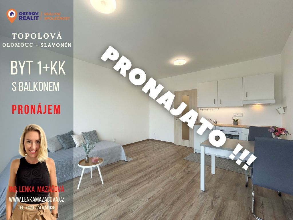 Pronájem moderního bytu 1+kk s velkým balkonem.