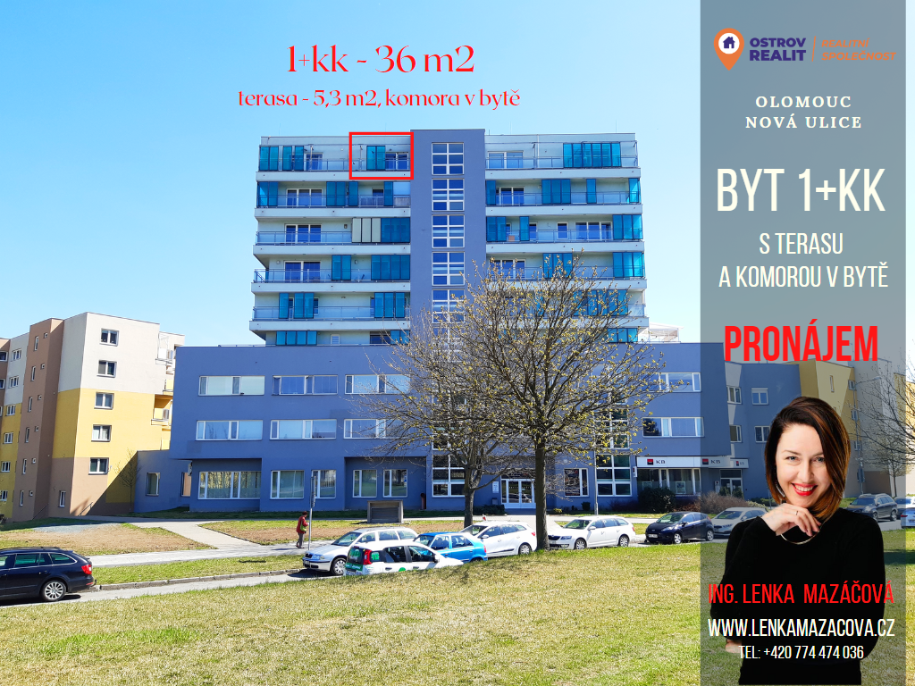 Nabízím Vám pronájem bytu 1+kk s terasou o celkové ploše 41 m2 a v žádané lokalitě Nová Ulice v Olomouci – Okružní.